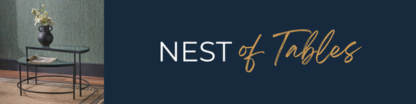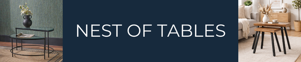 Nest of tables refers to a design where one table is ‘nestled’ underneath another, sometimes coming in 2s or 3s. This type of side table or coffee table design allows you to use the ‘top table’ as part of your furnishings, decorating with accessories, whilst having additional tables underneath available to pull out as and when you need additional table space, such as for guests to put drinks on.