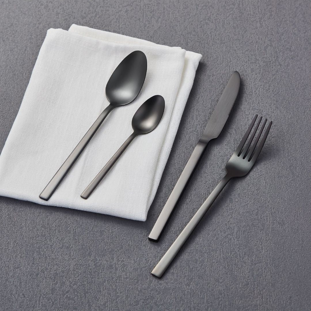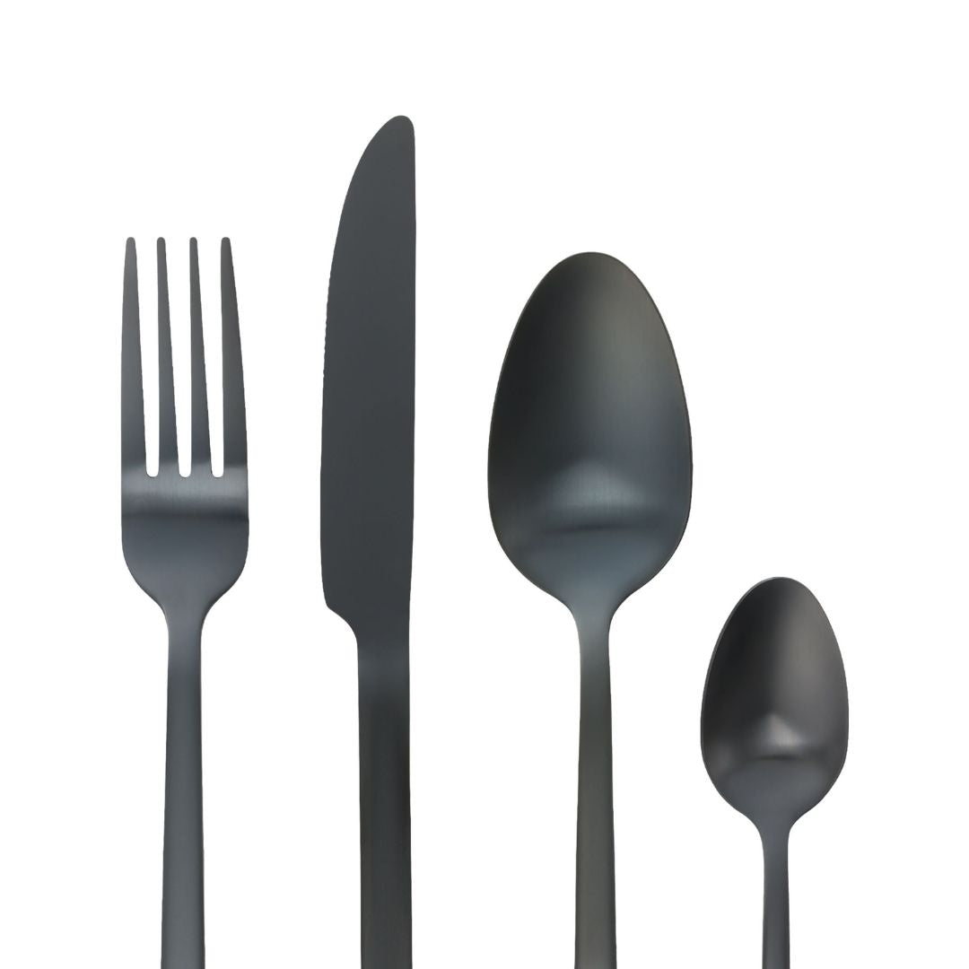 A sleek and modern cutlery set finished in elegant matte black, this contemporary set is designed with clean lines and a minimalist aesthetic. The matte black finish adds a bold, sophisticated touch, making this cutlery set perfect for both everyday dining and special occasions. Durable and stylish, it effortlessly enhances your table setting with a touch of modern luxury.