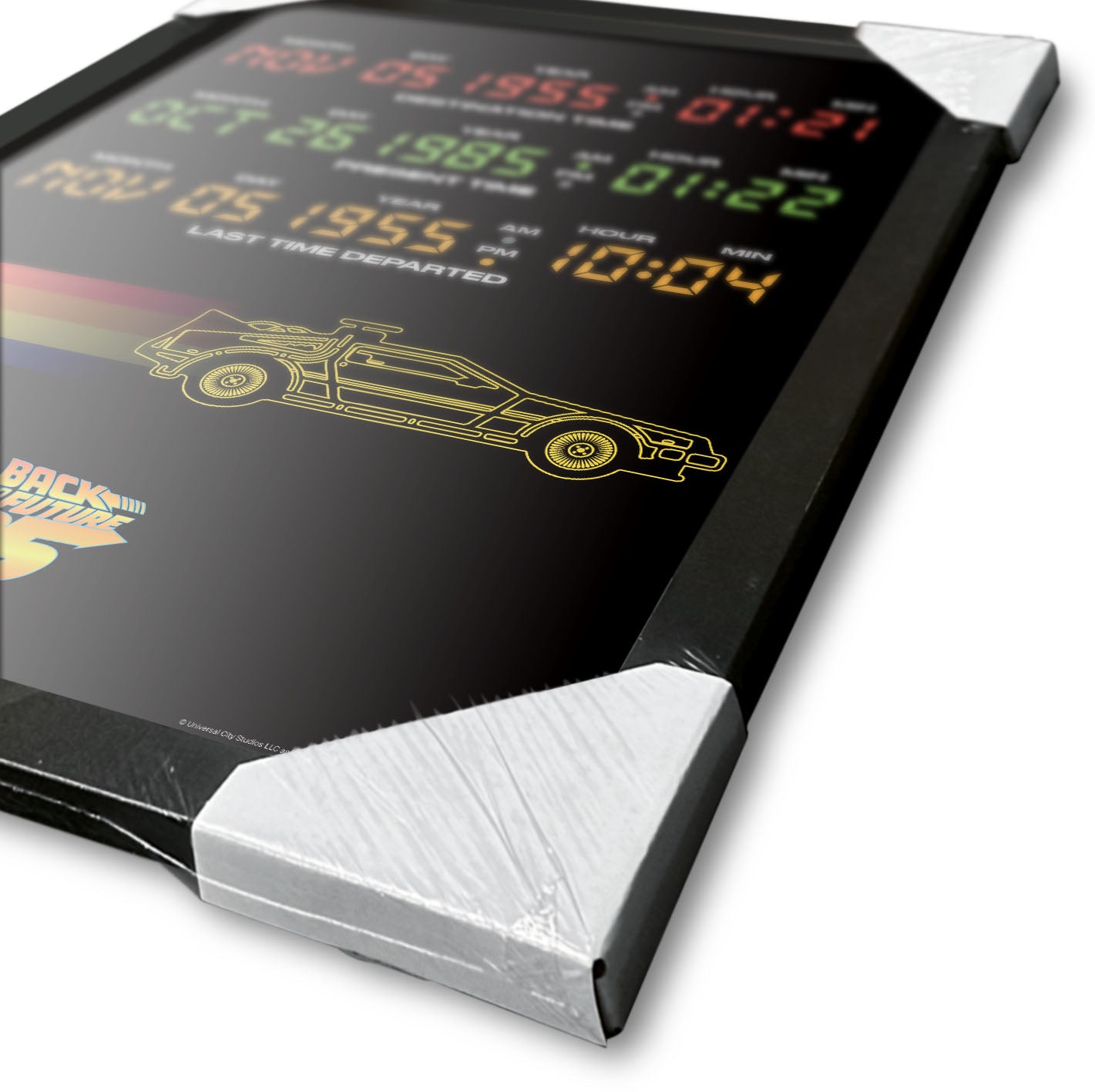 Celebrate one of cinema’s most beloved time-travel adventures with this striking 30x40 framed Back to the Future print. Featuring the iconic time-circuit display and the legendary DeLorean in a sleek neon-style design, this artwork captures the retro-futuristic energy of the classic film. Bold colours and crisp details make it a perfect centrepiece for any movie room, office, or collector’s display. Framed and ready to hang, it’s the ultimate décor piece for fans who want to bring a little 1.21 gigawatts of nostalgia into their space.