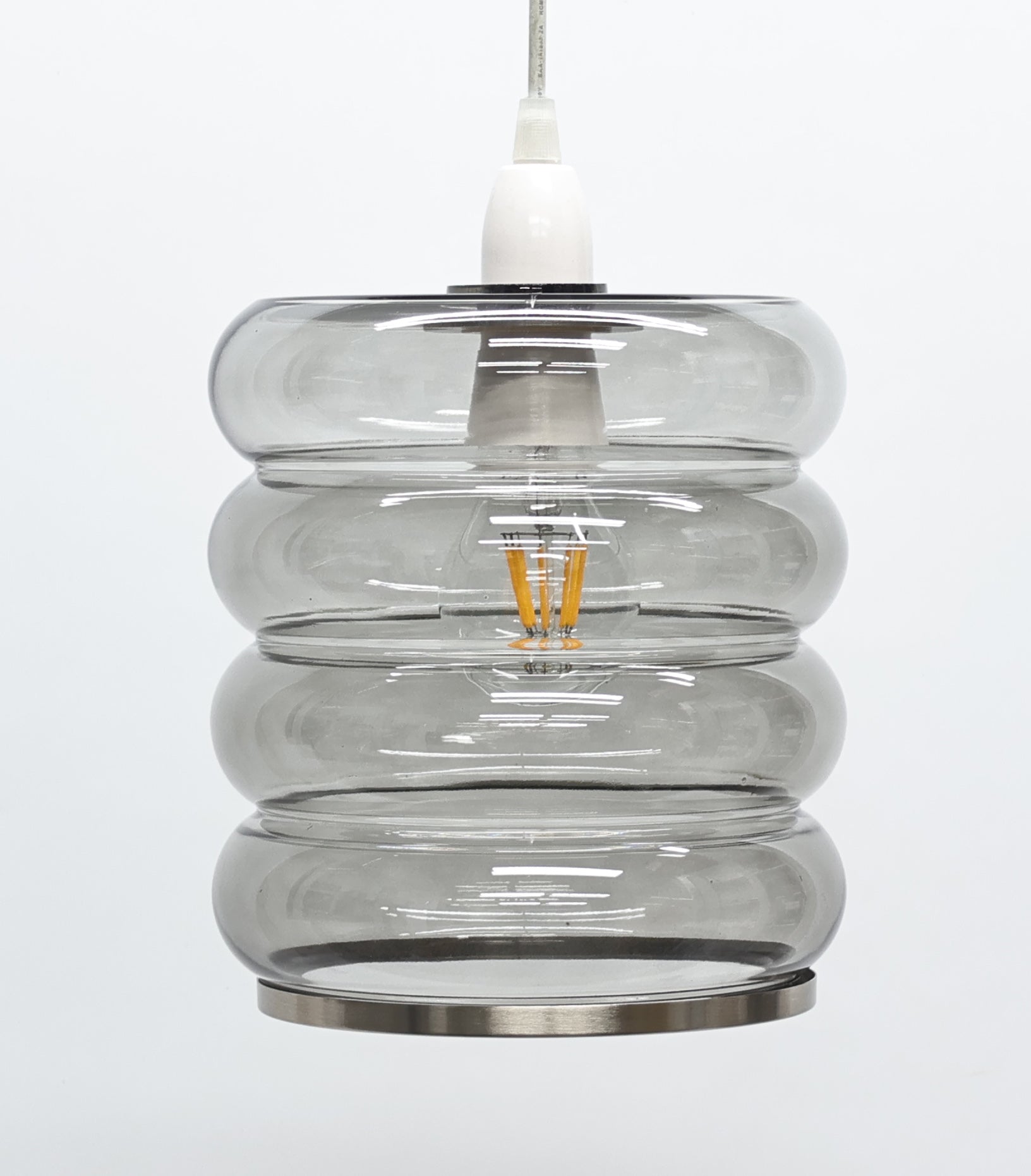 Elevate your lighting with the Cassia Smoke Glass Easy-Fit Pendant—a stylish blend of mid-century charm and modern elegance. Its unique beehive-shaped shade is crafted from smoked glass, giving it a moody, atmospheric glow that's perfect for creating a cozy ambiance.