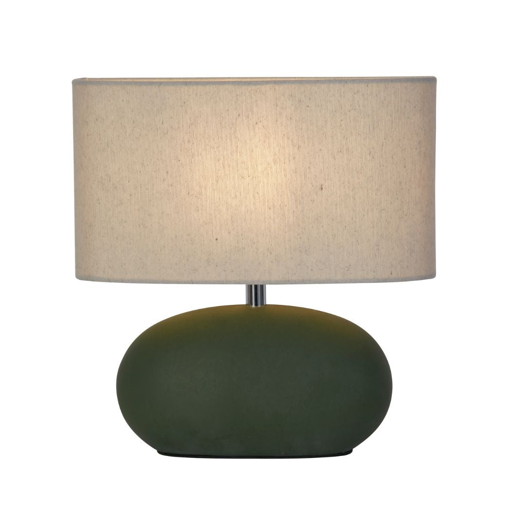 The Eveline table lamp brings a refreshing, natural feel to your home with its elegant green ceramic base. The smooth, oval shape paired with the calming green hue offers a tranquil, nature-inspired aesthetic. Topped with a natural-coloured drum shade, this lamp provides a warm, soft glow, perfect for creating a relaxed and inviting atmosphere. Ideal for living rooms, bedrooms or entryways, the Eveline table lamp blends effortlessly with both contemporary and traditional decor styles. Its simple yet sophisticated design adds a touch of organic charm, making it a versatile accent that enhances any space.