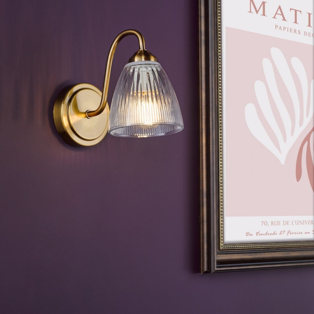 Infuse your space with a touch of vintage elegance using the Glynis Antique Bronze Wall Light. This bronze wall light boasts a timeless antique finish and ribbed glass shade, marrying traditional charm with subtle texture. Perfect for entryways, hallways, or anywhere you'd like to add a warm glow, this traditional wall light effortlessly elevates your decor.