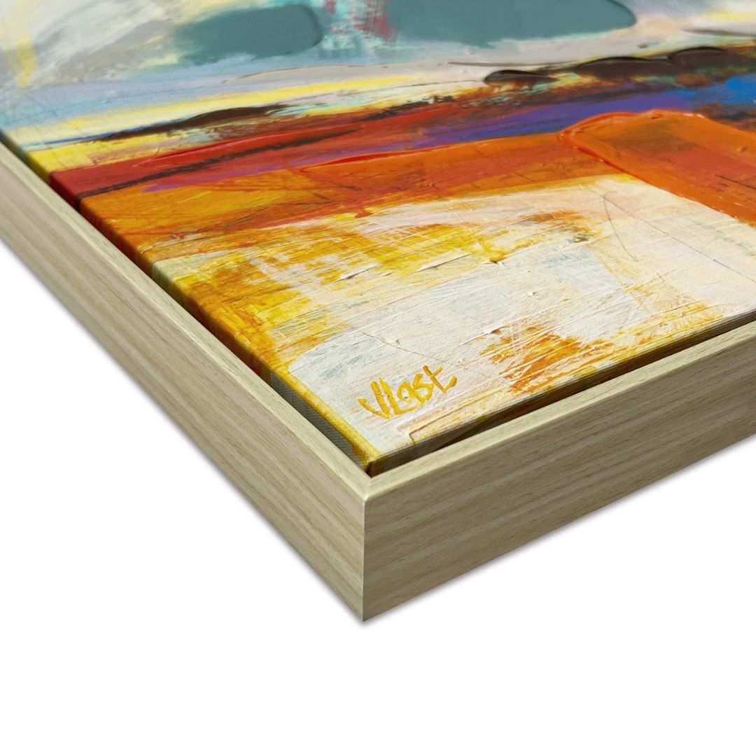 Summer Morning framed canvas print by Joanne Last, featuring an oak-coloured frame and hand-painted embellishments.