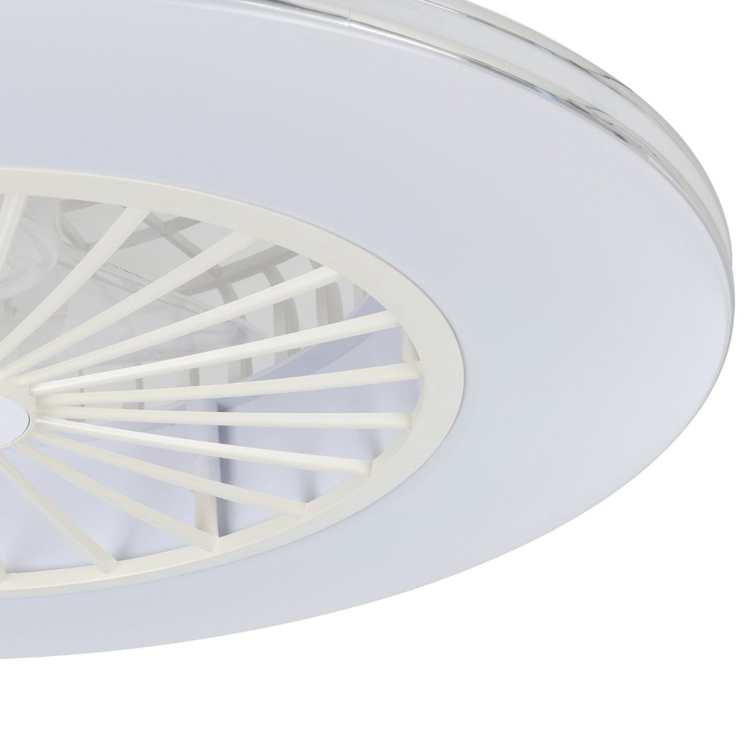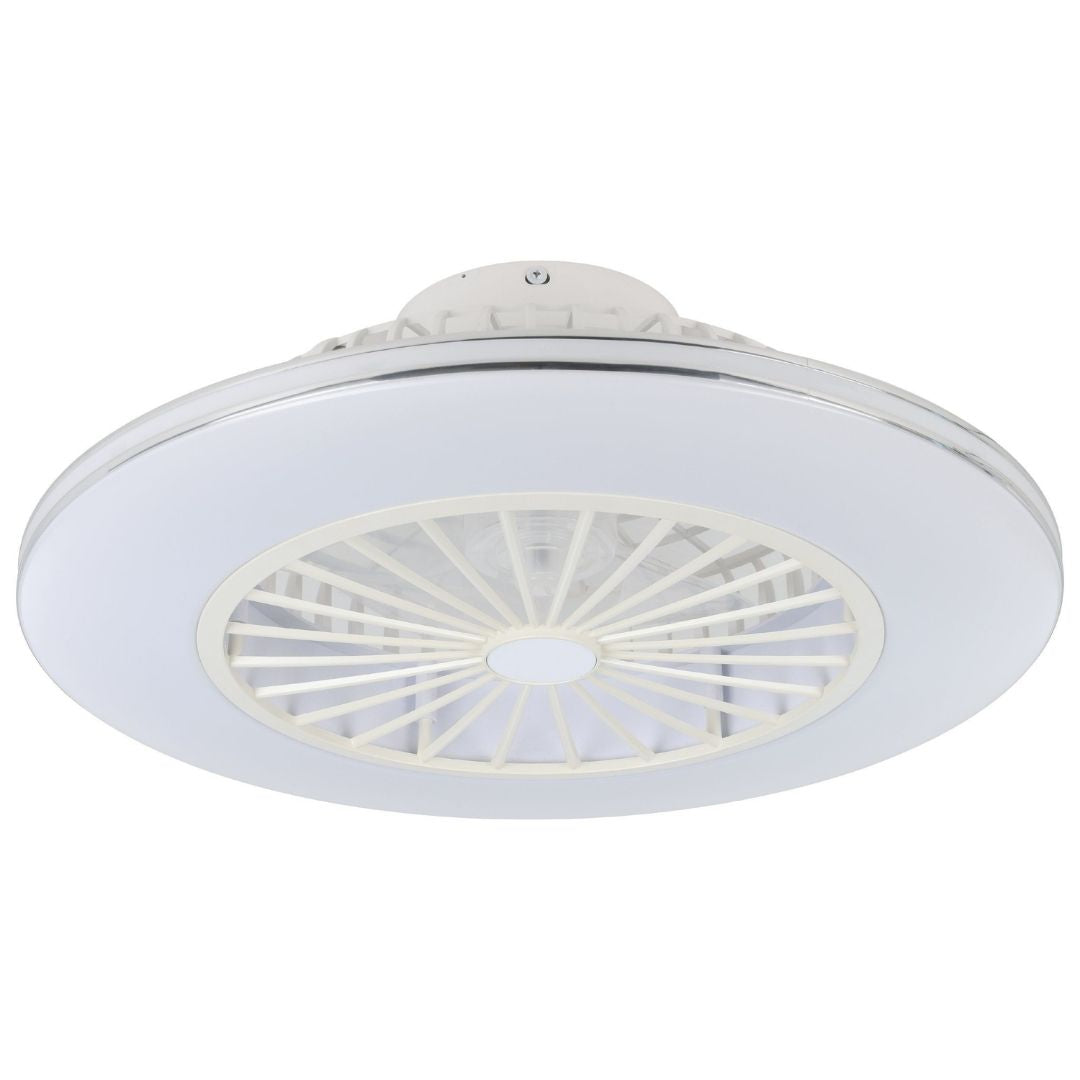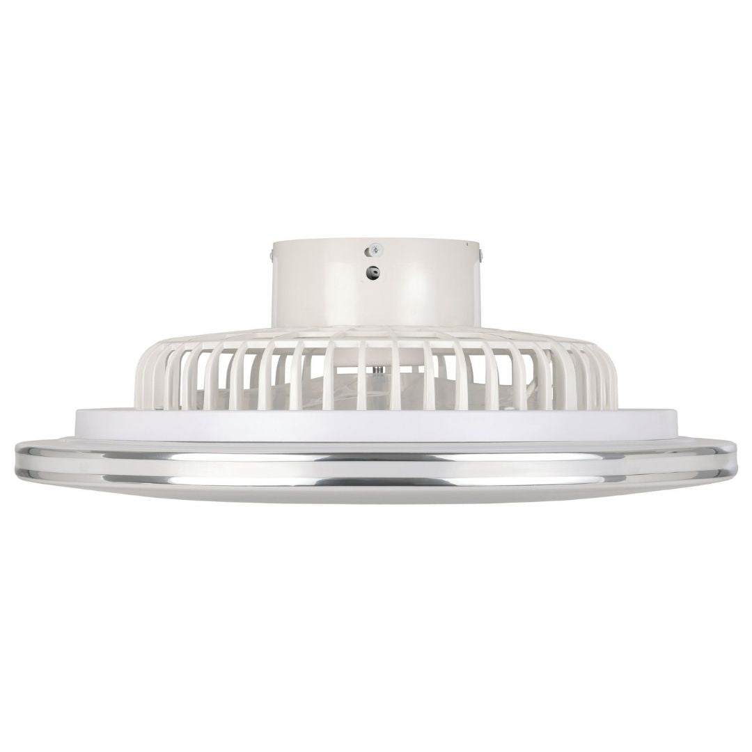 Lovisca LED ceiling fan, featuring a white plastic body with silver accents.