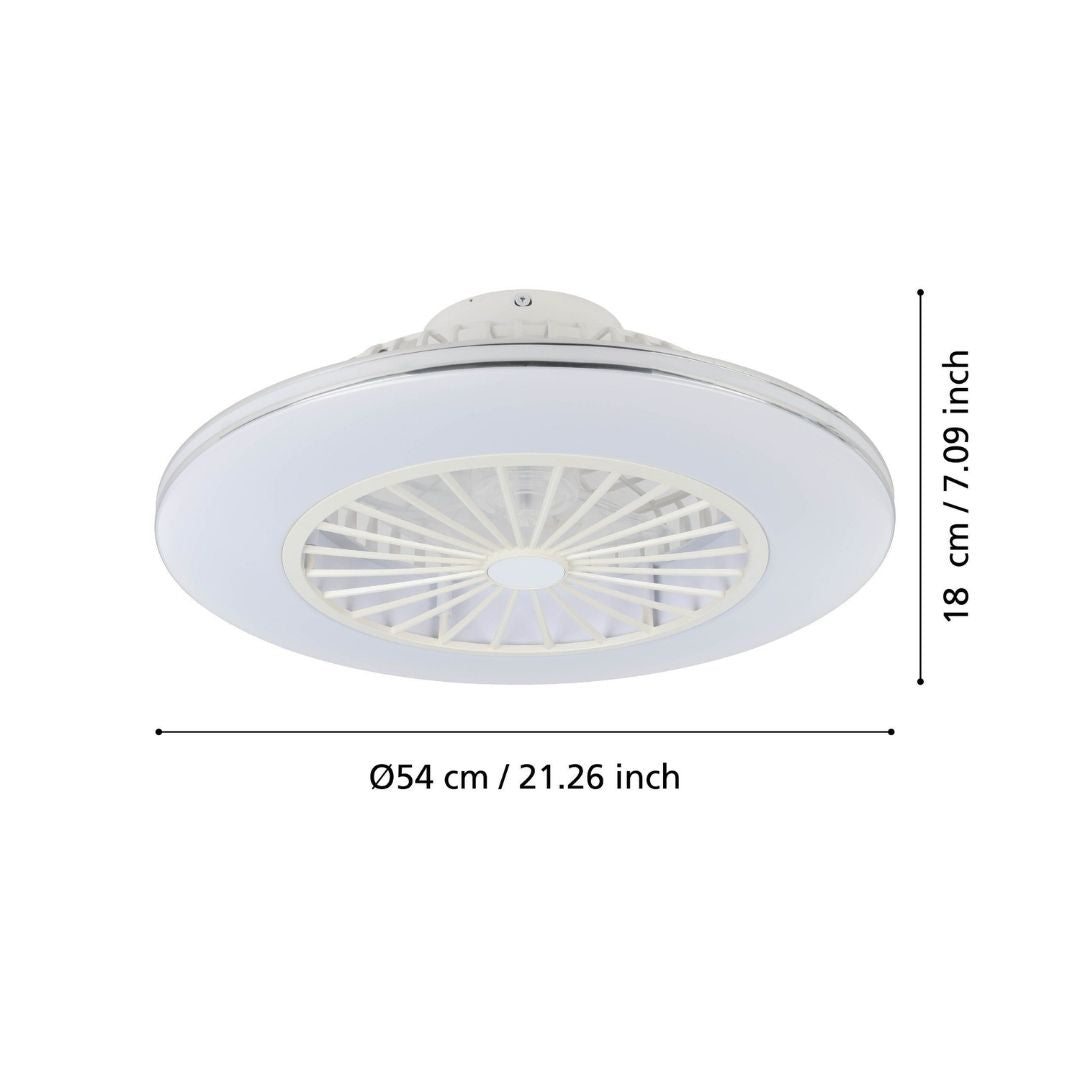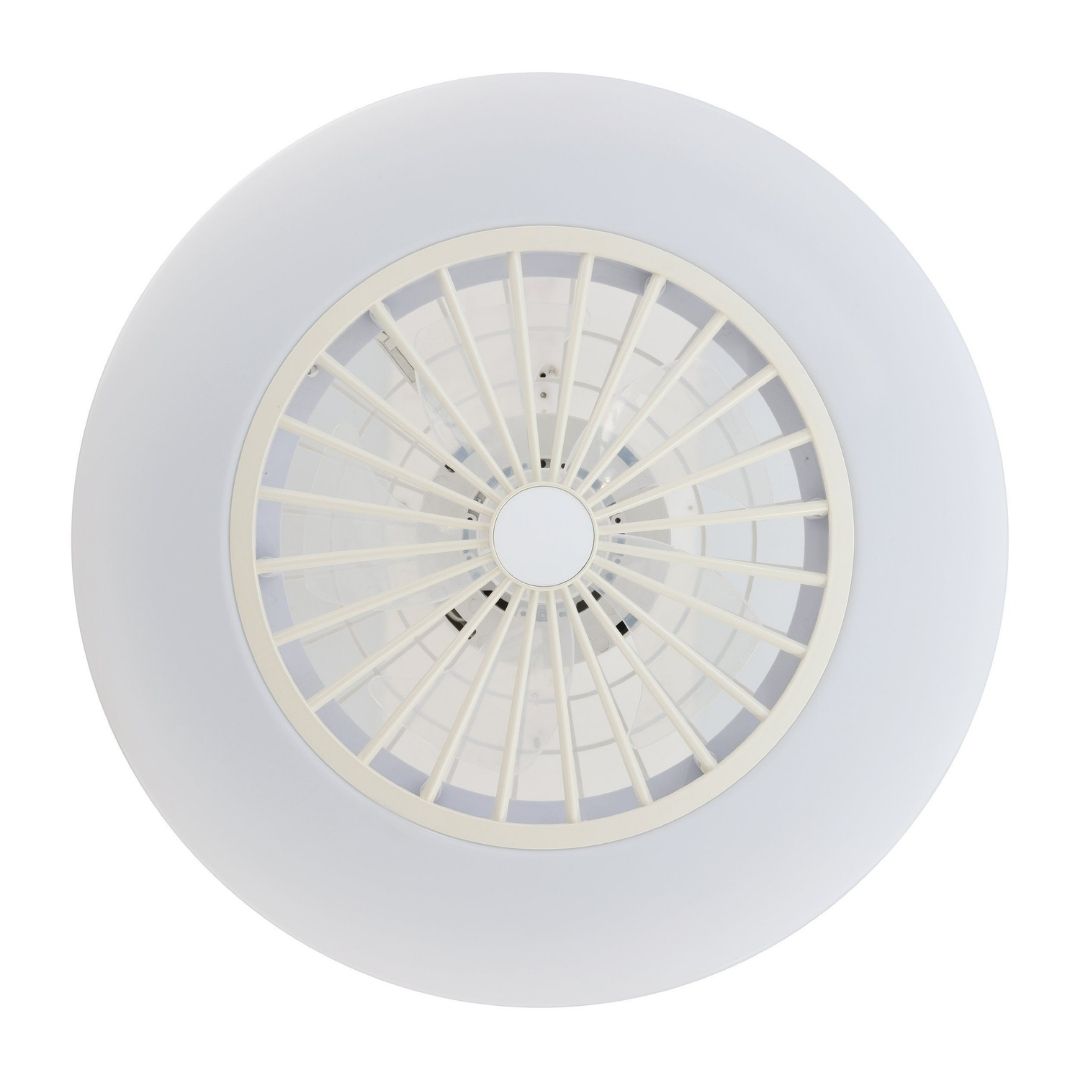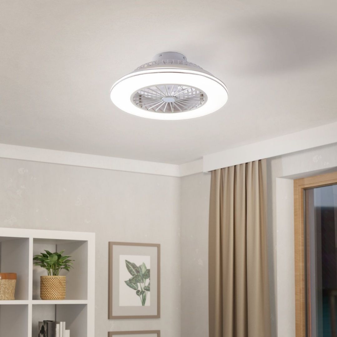Lovisca LED ceiling fan, featuring a white plastic body with silver accents.