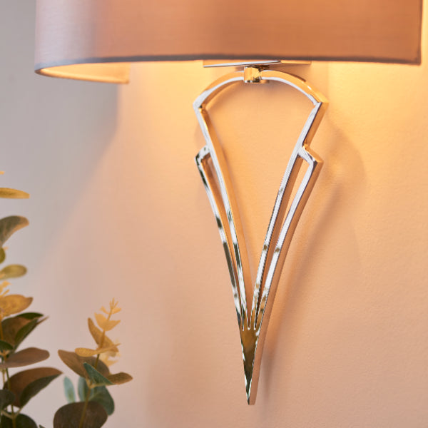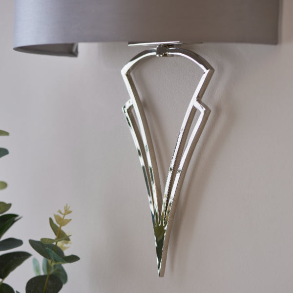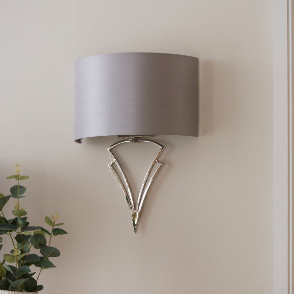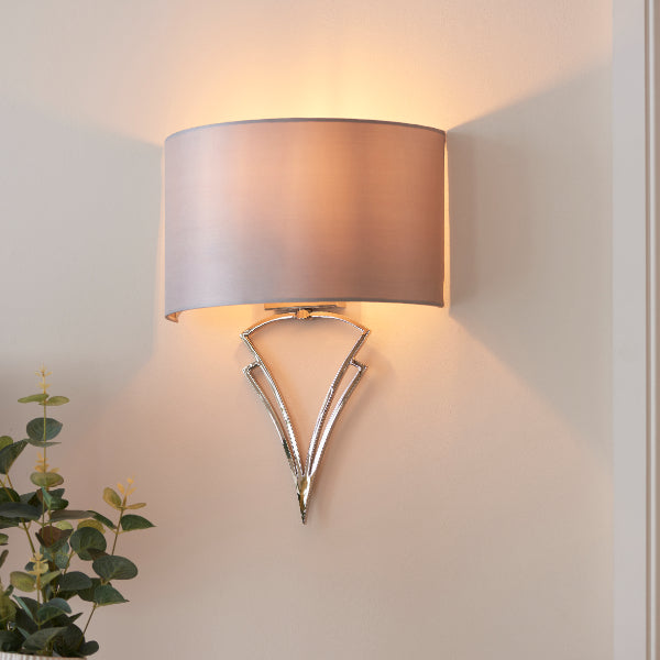 The Lyla is a stunning, eye-catching wall light that will complement any room. Featuring a modern satin nickel finish and curved grey shade for optimum light output. Ideal for use above beds, sofas and in hallways.