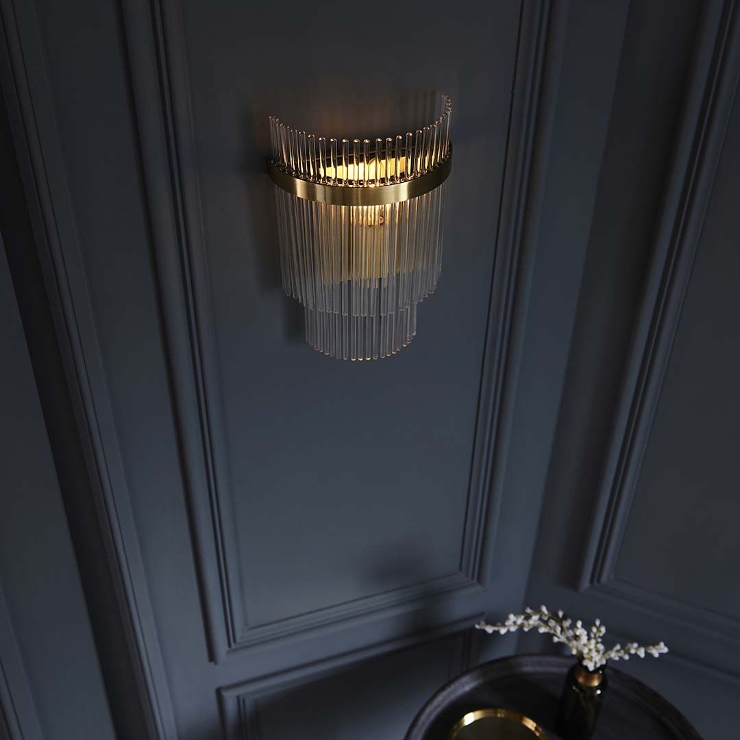 Illuminate your space with timeless elegance using the Marietta Antique Brass Wall Light. Crafted with exquisite antique brass plated metal work and adorned with decorative clear glass rods, this wall light adds a touch of vintage charm to any room. Its dimmable feature allows you to set the perfect ambiance for any occasion. Designed to be compatible with E14 LED lamps, this wall light not only enhances your space but also helps you save energy.