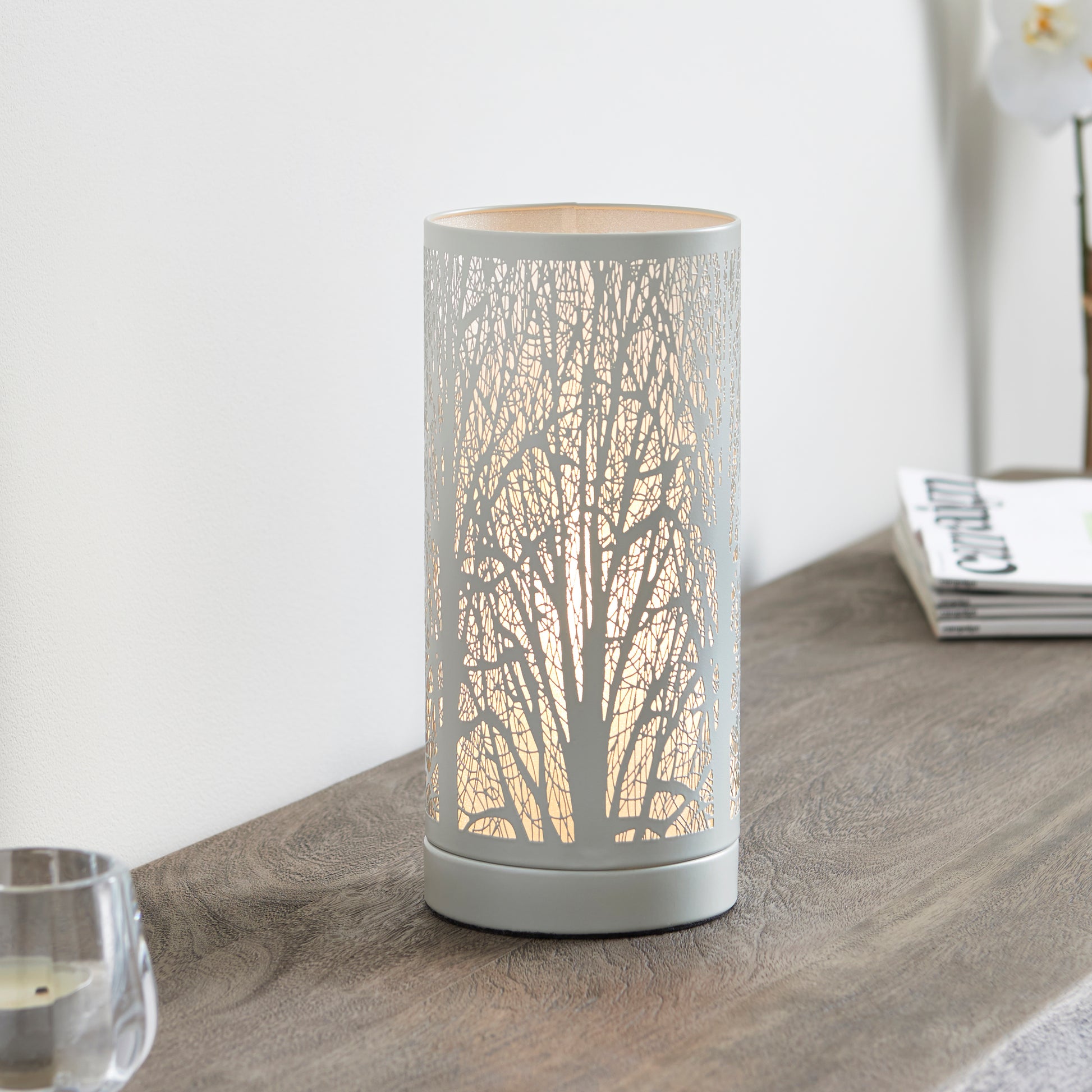 White touch table lamp with tree design