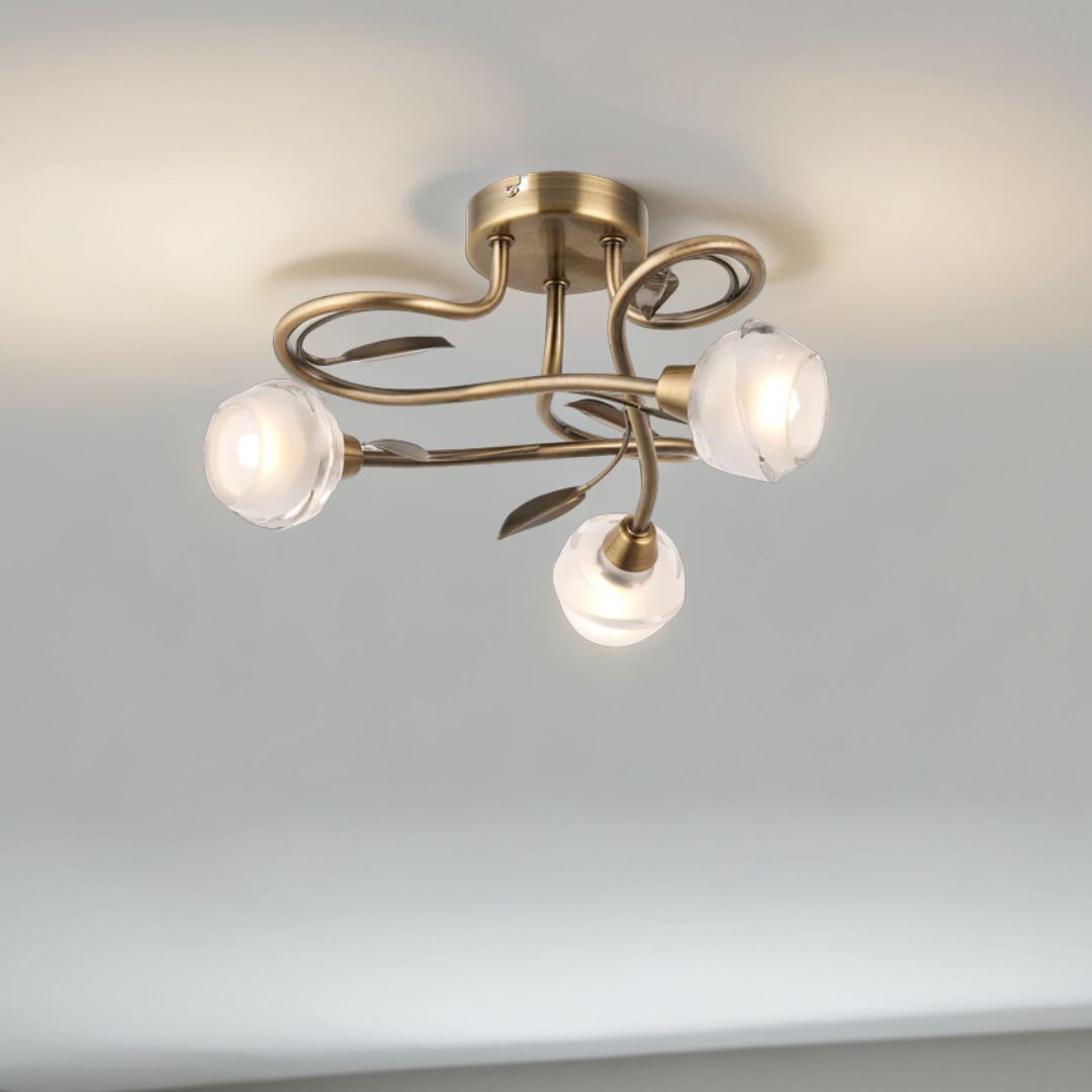 Maywood 3 Light Semi Flush Ceiling Light Antique Brass