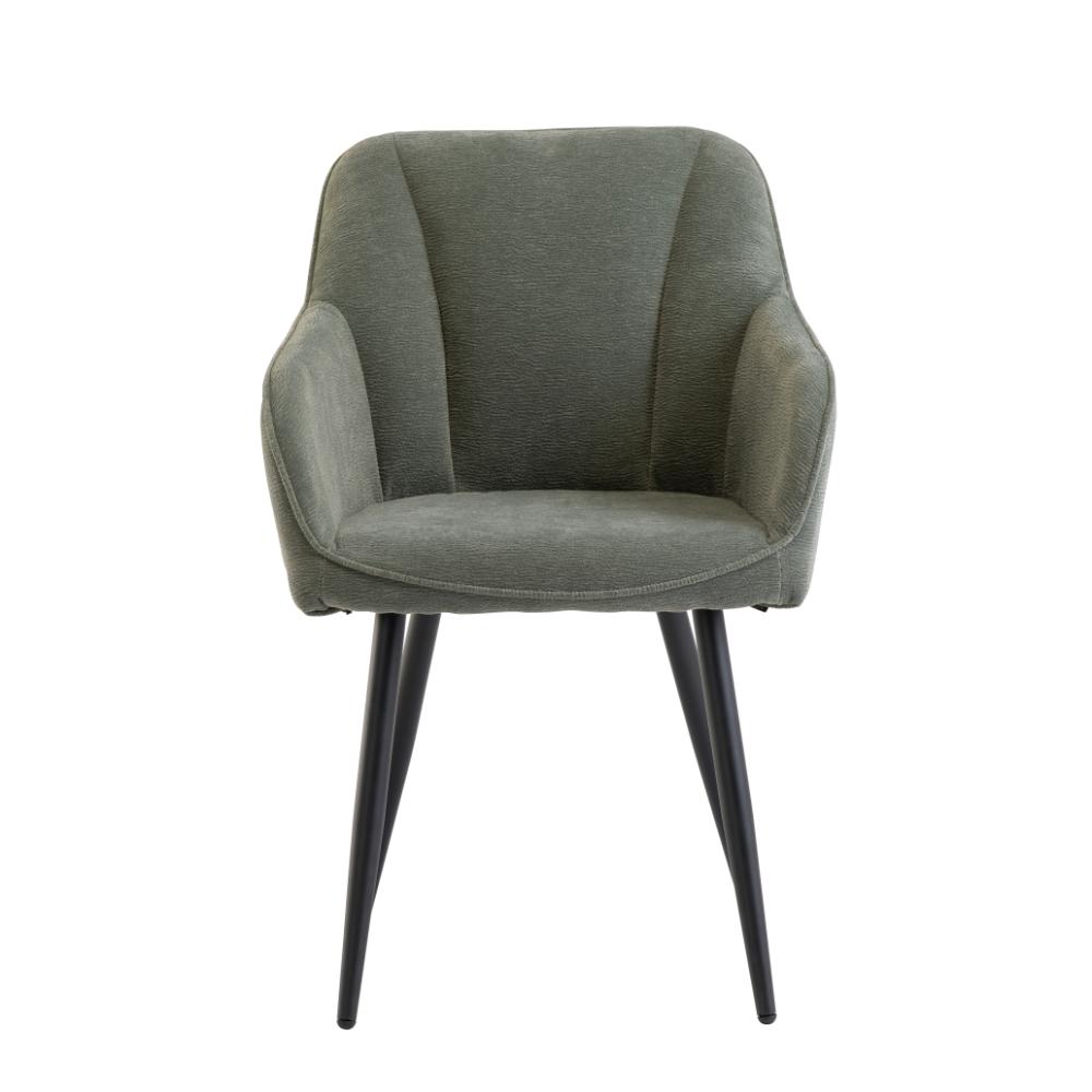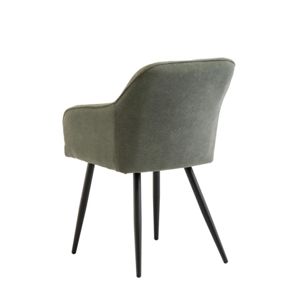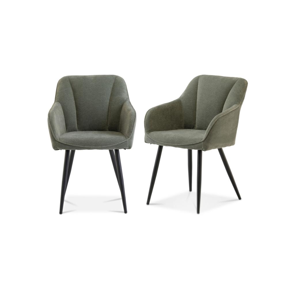 The chairs are a beautifully tailored soft touch textured fabric with back support and armchair sides that provide optimum comfort whilst looking fabulous. Finished with black powder coated legs.