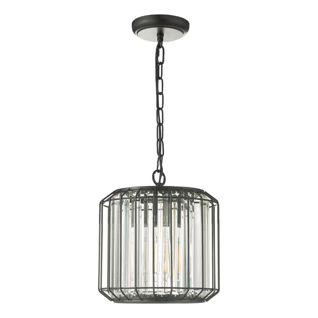 Naeva pendant ceiling light with faceted glass and satin black finish.
