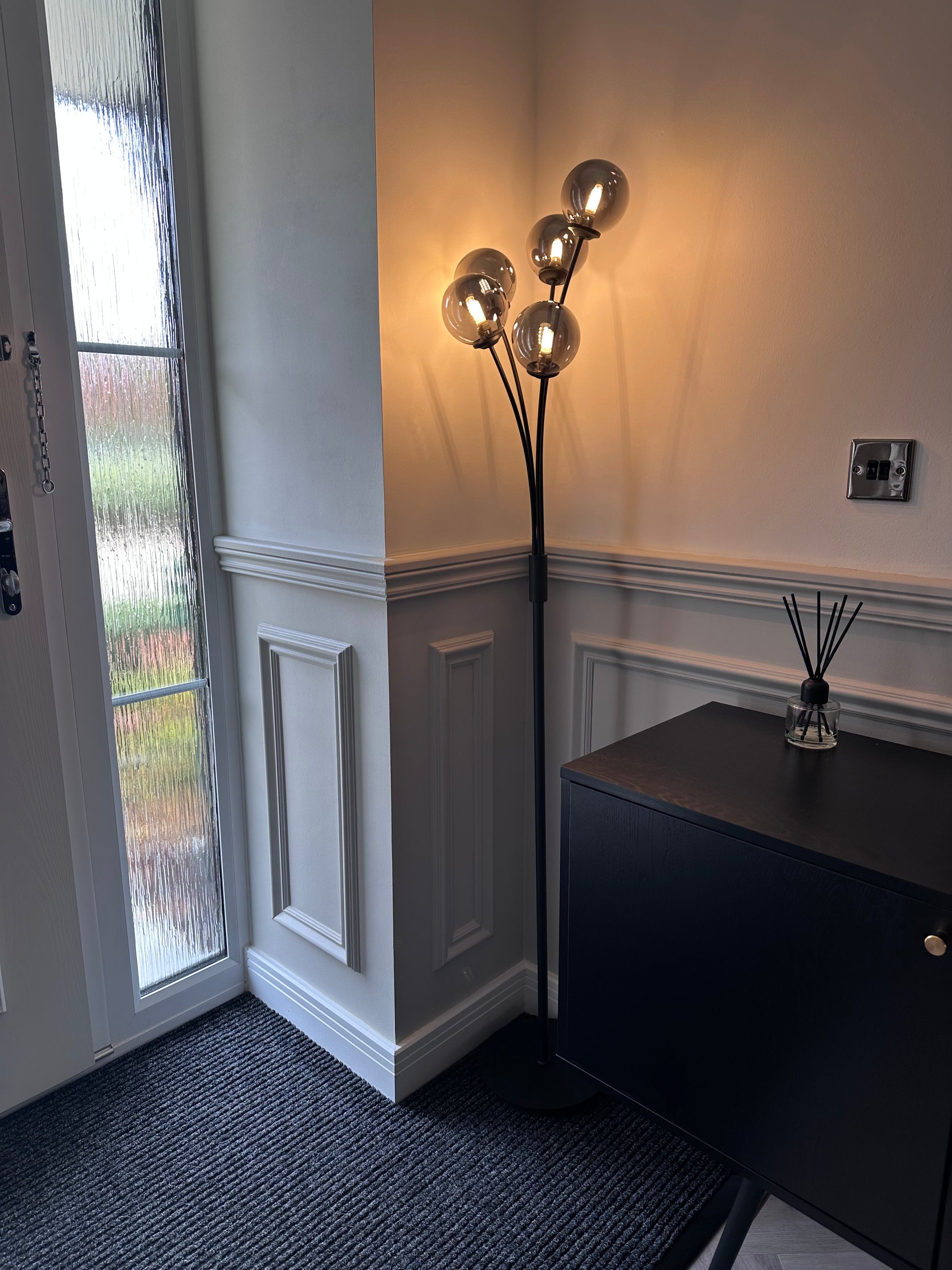 Add a sophisticated touch to your home with the Navarro collection. Featuring a matt black detailing and smoked glass shades. The perfect addition to both contemporary or traditional interiors that are needing additional lighting.