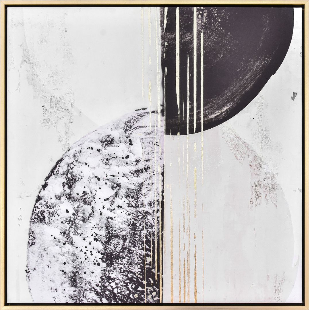 A stunning fusion of simplicity and elegance, New Balance II by Eva Watts is a captivating abstract framed canvas. Showcasing a minimalist, monochromatic design, this piece is elevated with delicate gold foil embellishments that add depth and sophistication. Encased in a sleek gold frame, it exudes a modern yet timeless aesthetic, making it a perfect addition to contemporary interiors. Ideal for bringing a sense of balance and refinement to any living space, bedroom, or office.