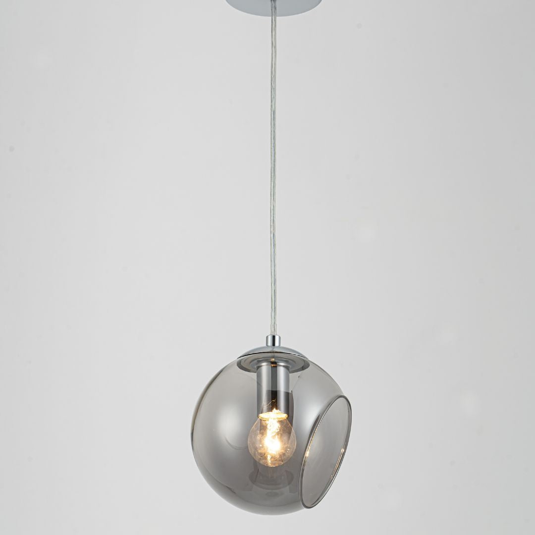 The globe-shaped shade showcases a subtle smoked glass effect, gently diffusing the light to create a warm and inviting ambiance. Finished in sleek chrome, the minimalist pendant mount enhances the modern aesthetic, while the adjustable cable offer flexibility in height to suit your space.