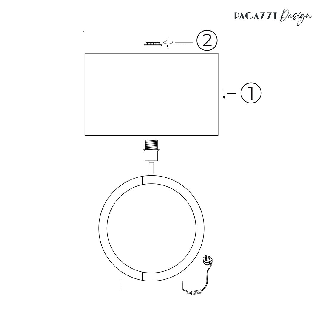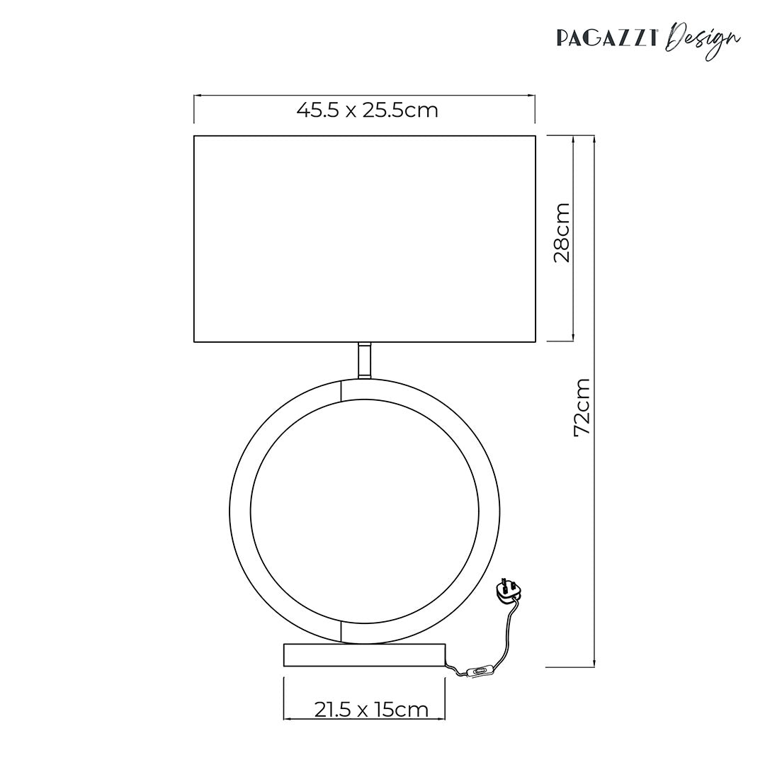 At the heart of this beautifully modest lamp sits a painted soft-gold metal hoop, forming a smooth circular silhouette that is both stylish and understated. The hoop is mounted on a white resin plinth with a subtle marble-effect finish, adding a fresh contemporary touch while ensuring stability. A champagne-coloured woven fabric flex enhances the premium feel, coordinating perfectly with the lamp’s warm metallic tones.
