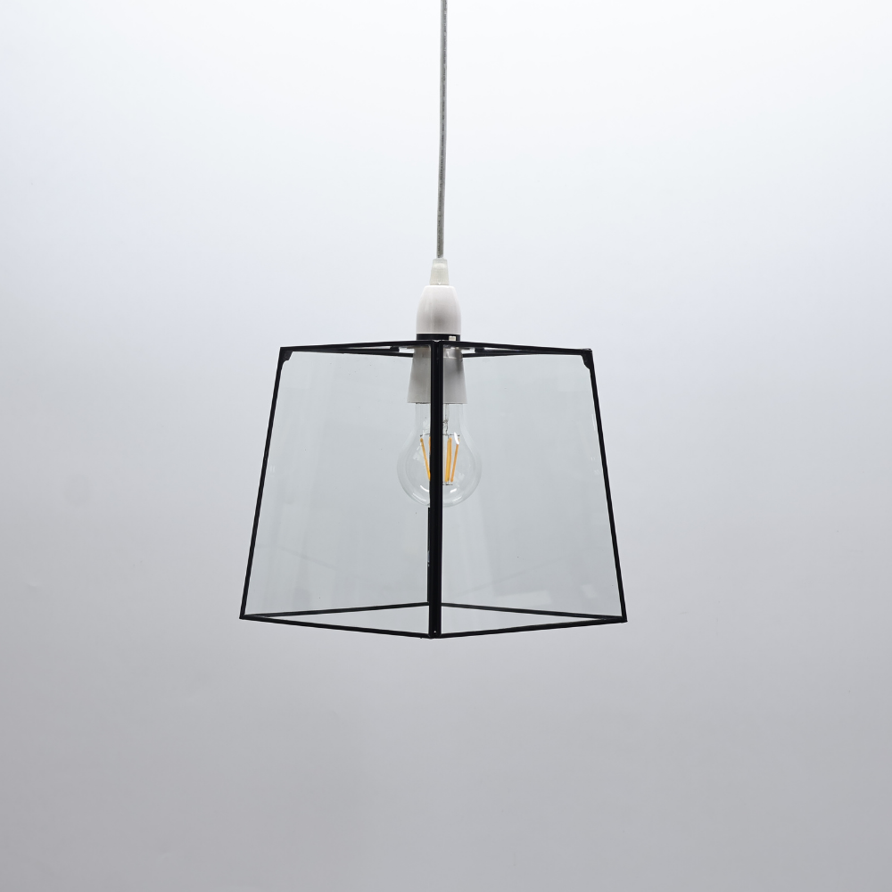 The easy-fit design allows for quick installation over your existing bulb fitting, making it a perfect upgrade for any room. Its clean lines and minimalist shape bring a modern touch, while the transparent panels beautifully showcase decorative filament bulbs.