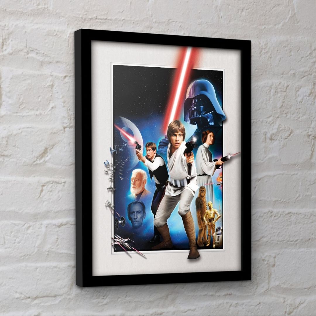 Star Wars Montage print wall art, paired with a black frame.