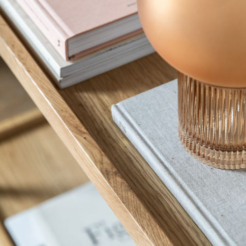 Assembly required This contemporary open display unit is the perfect way to show off your items, whether you're showcasing antiques or displaying your own collection. The sheles are tray style with oak veneer tops and solid oak surrounds. A matching wall unit is available so you can coordinate your interiors.