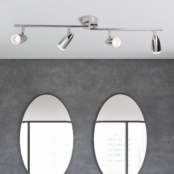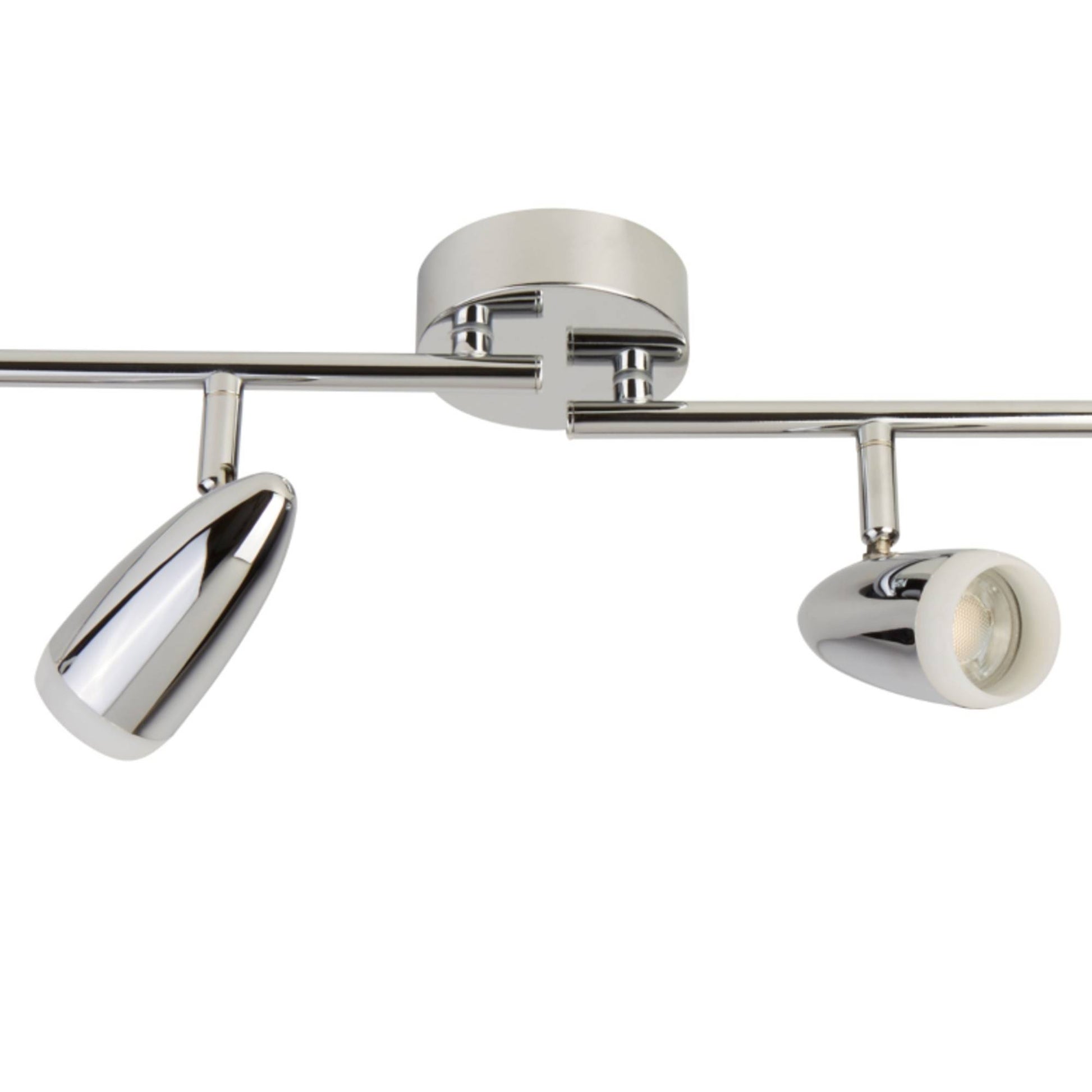 Contemporary LED spotlight bar boasting a polished chrome and frosted finish.