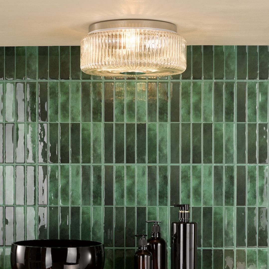 The Twyman 3-Light Polished Chrome IP44 Flush Ceiling Light, its IP44 rating makes it perfectly suited for bathrooms and other moisture prone areas. Frosted ribbed glass shades diffuse the light beautifully, creating a soft, even glow. With its sleek profile and timeless design, Twyman brings both durability and elegance — a versatile piece that enhances interiors with quiet confidence.