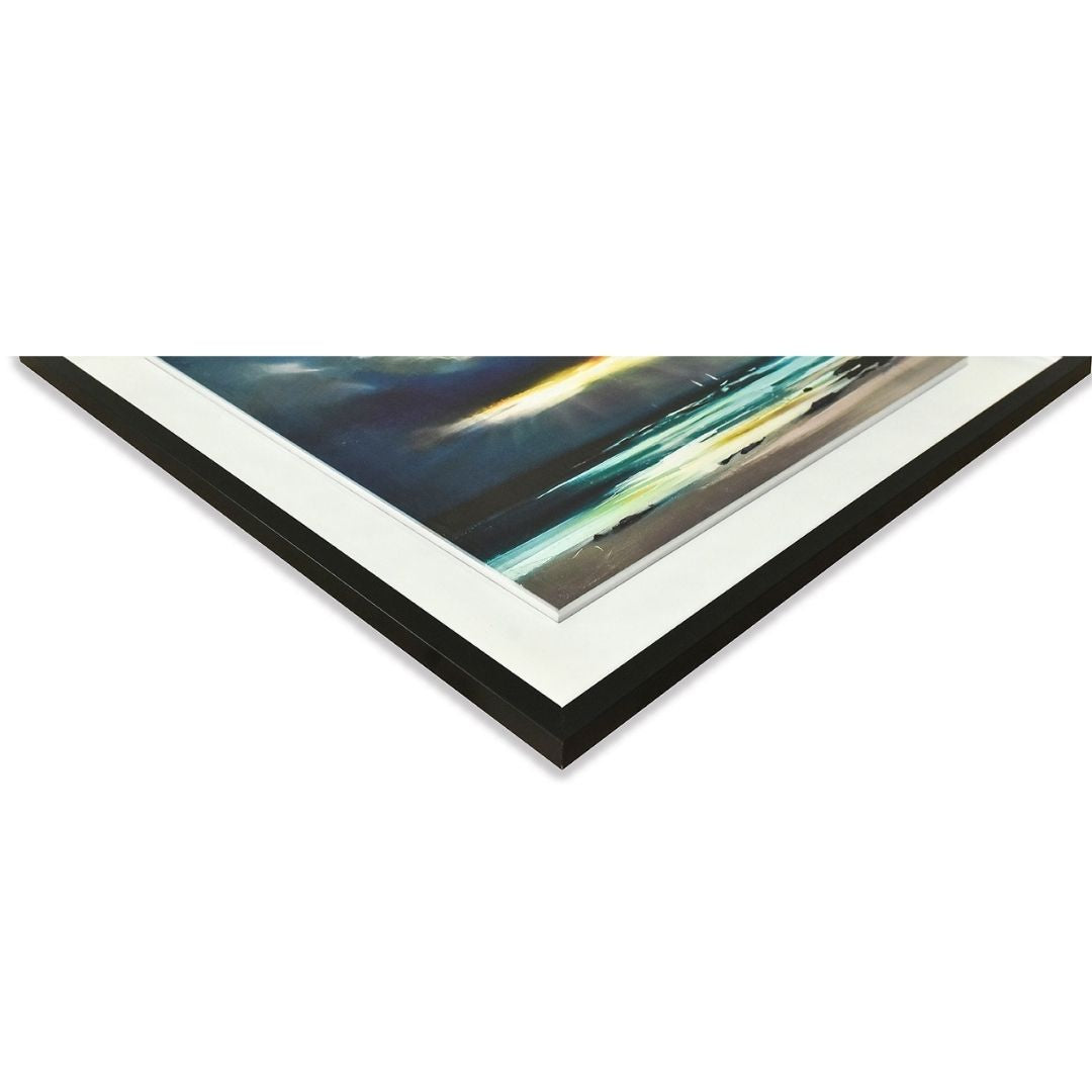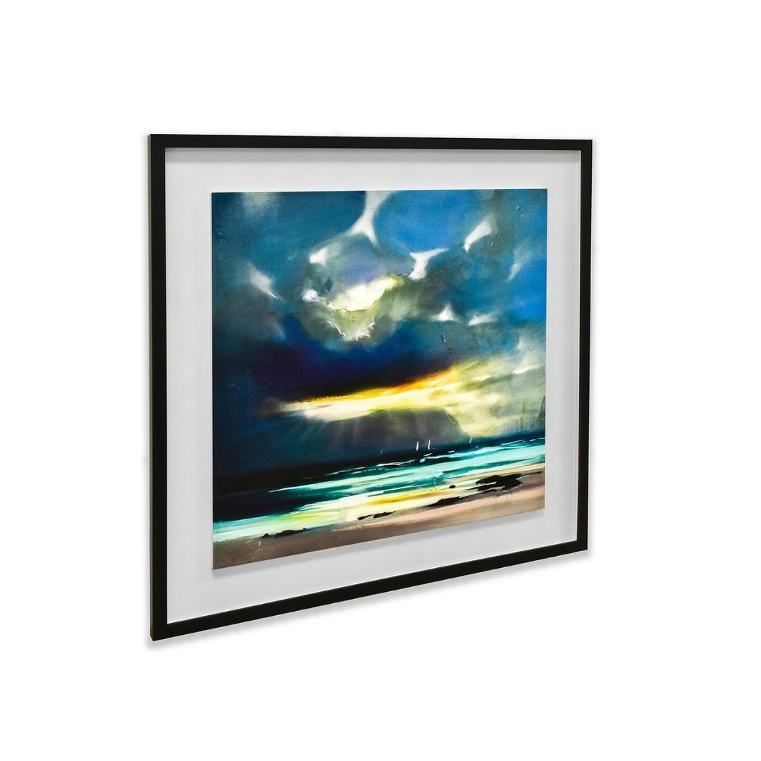 West Coast Blues II by Scott Naismith, a square wooden plaque mounted on a white board and framed in black.