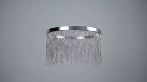 The Zelma LED Pendant Ceiling Light is a strikingly beautiful fitting from Endon. Finished in polished chrome throughout, this gorgeous piece boasts a shade with an LED ring, of which delicate silver effect chains are suspended. The chains hang at varying lengths, offering a shimmery effect when lit.